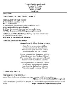 • Easter Worship, Sunday, April 5, 2026